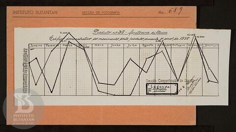 reprodução da Seção de concentração de soros "gráfico demonstrativo do movimento deste produto durante o ano de 1938". Ficha da Seção de fotografia nº 689, solicitado pela Diretoria (Dr. Renato Fonseca). Frente