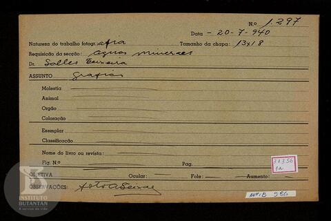 Reprodução de gráfico. Ficha da Seção de fotografia nº 1297, solicitado pela Seção de águas mineraes (Dr. Salles Teixeira). Verso