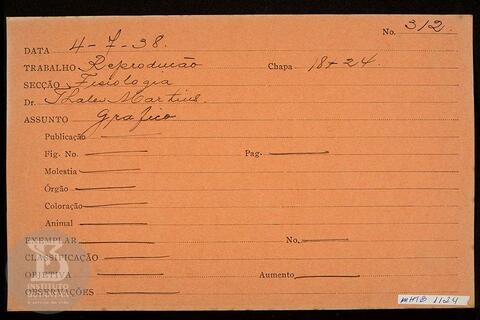 Reprodução de gráfico. Ficha da Seção de fotografia nº 312, solicitado pela Seção de Fisiologia (dr. Thales Martins). Verso
